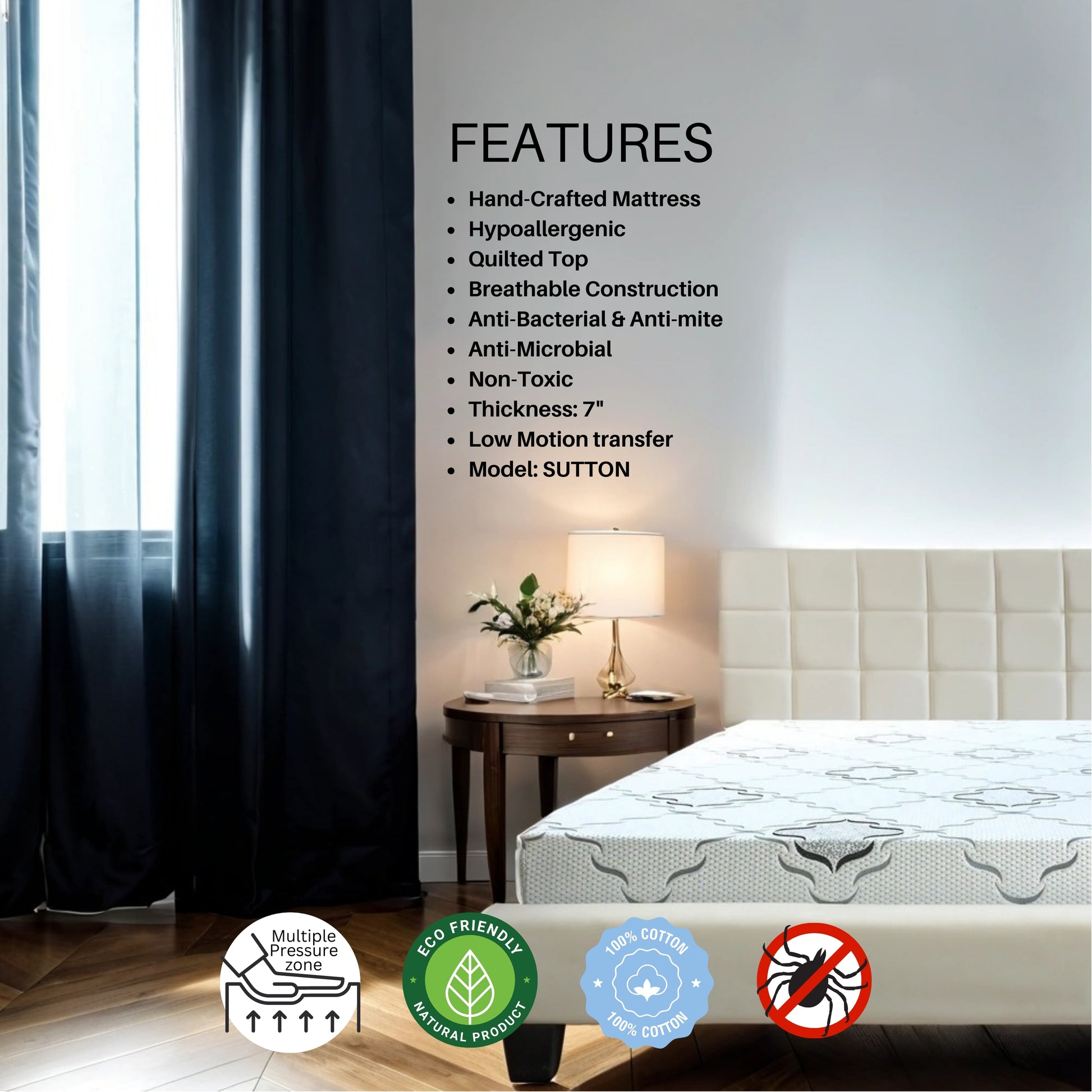 SUTTON- 7 INCH FOAM- Hand-Crafted Mattress: Your Gateway to Blissful Sleep